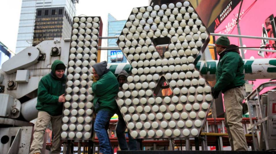 实际上,每年全球有10亿人在现场和实况转播观看美国纽约时代广场的新年倒数。在12月31日晚11点59分水晶球缓缓落下,迎接新年到来。这枚水晶球并非简单的一个象征,更承载着丰富的历史。下面来看看今年的水晶球。今年所采用的依然为第五代水晶球, 直径12英尺, 重1.2万磅,是用2688块大小各异的三角形水晶打造,由超过3.2万个飞利浦LED屏等点缀而成,它能够显示出超过1600万种不同颜色和图案的组合效果,看起来犹如万花筒一般。水晶球在宛如一个新年魔法画家在时代广场上空打造的巨型调色板。