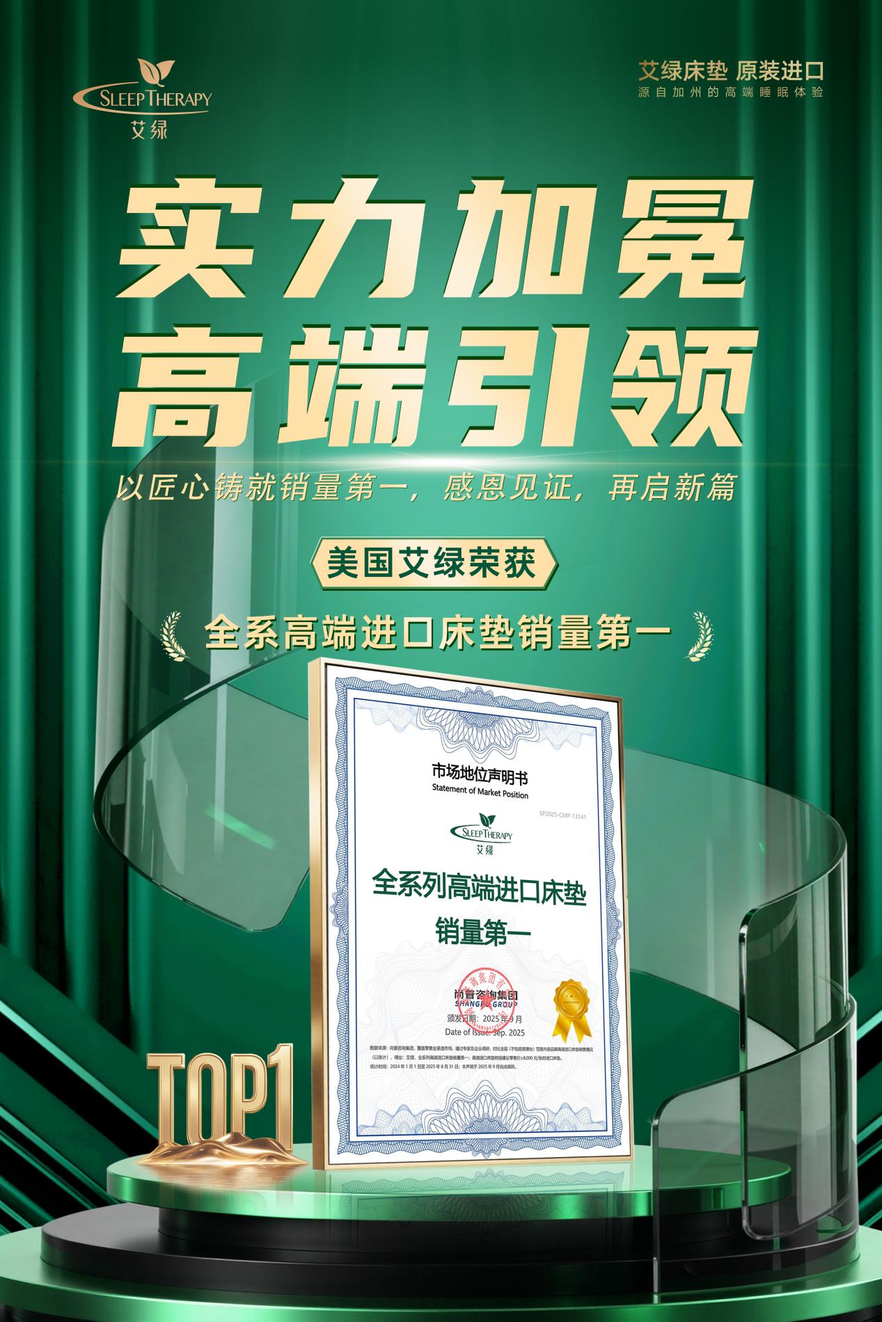 根据尚普咨询集团于2025年9月发布的权威调研报告,在统计周期2024年1月至2025年8月期间,艾绿品牌旗下全系列高端进口床垫在全国零售全渠道实现显著销售突破,以领先优势稳居同类品牌销量榜首。这一扎实数据不仅印证了艾绿在高端床垫市场的强劲表现!更直接反映了消费者对艾绿产品品质与睡眠解决方案的深度认可与信赖。